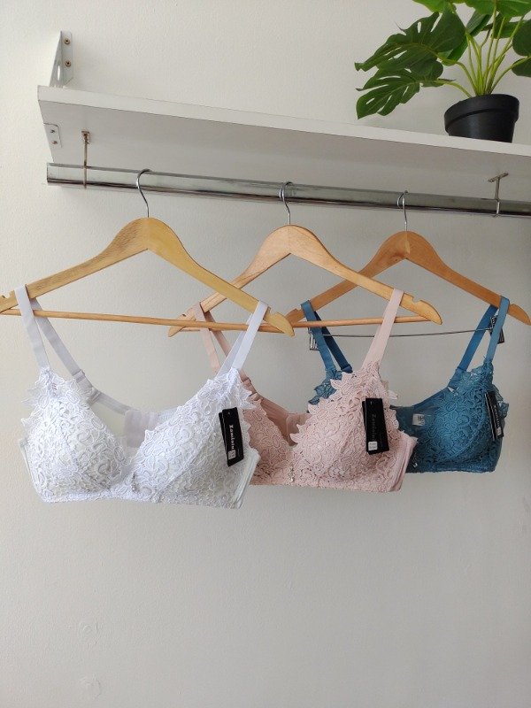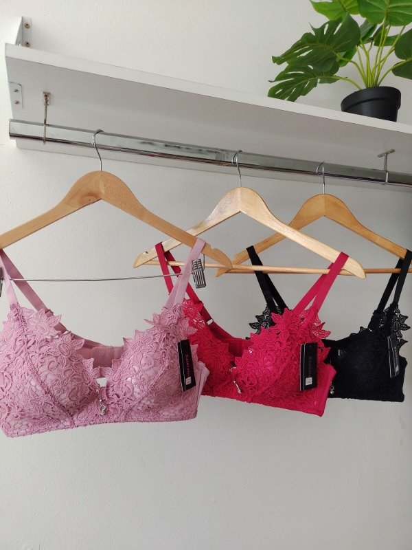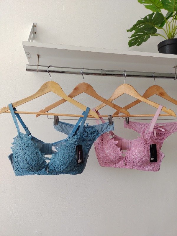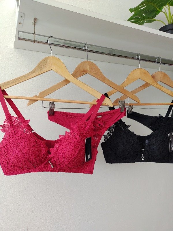 Set importado con detalles bordados. Corpiño con taza, bretel ancho y broche triple, y avíos plásticos.