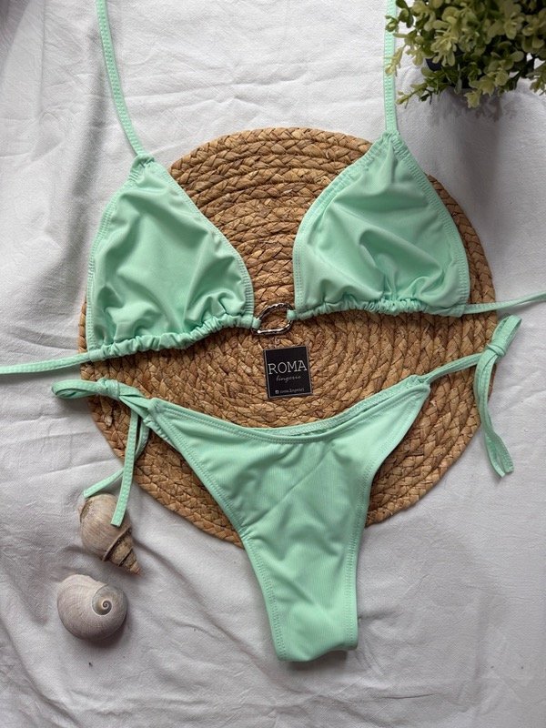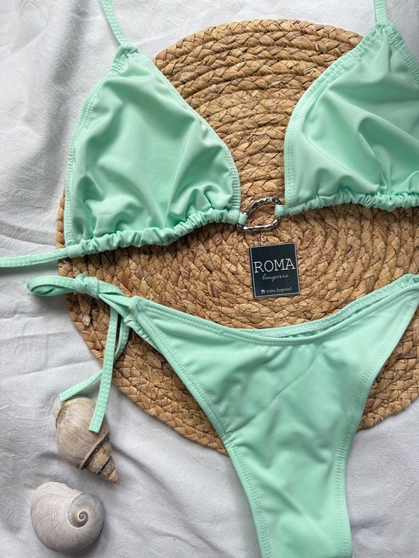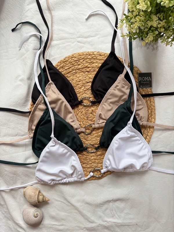 Bikini triangulo con detalles de argollas. Tazas desmontables.