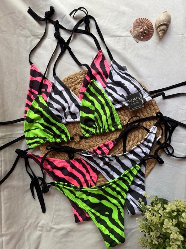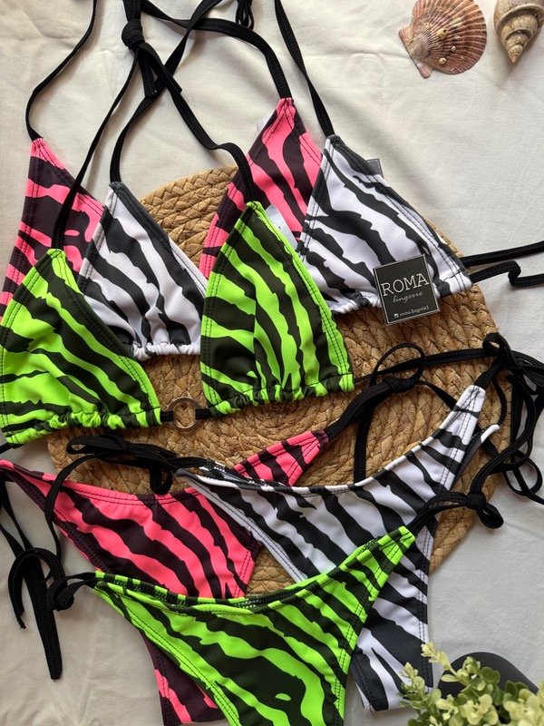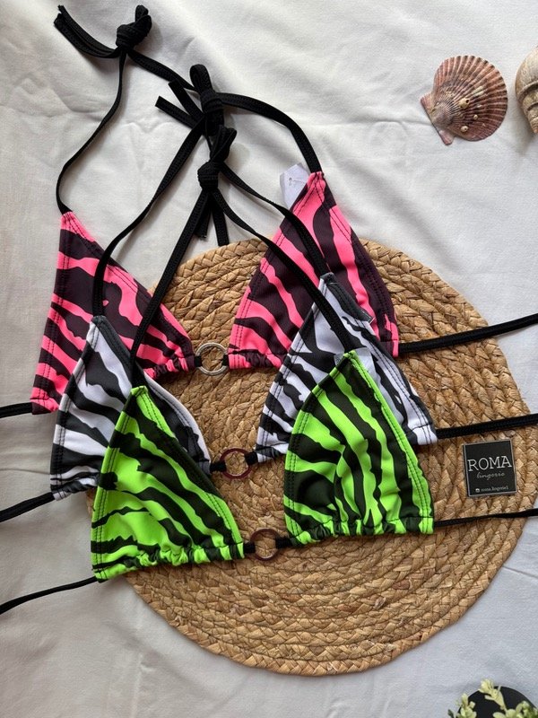 Bikini triangulo con detalles de argollas. Tazas desmontables.