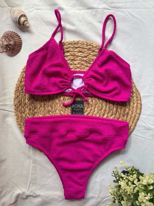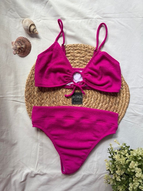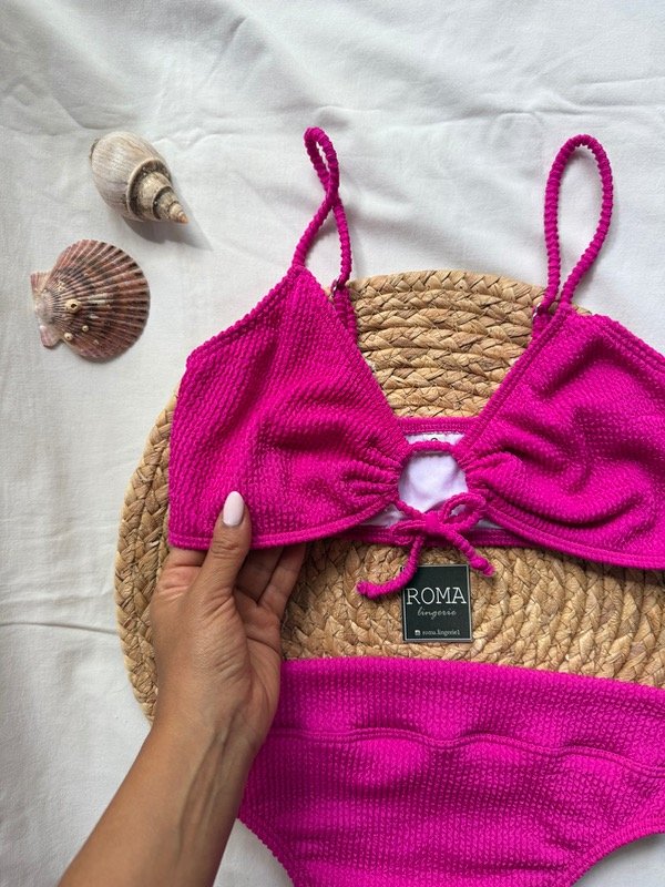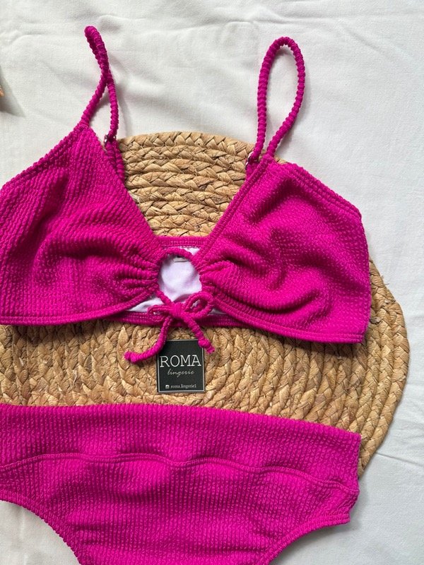 Bikini tipo top. Correderas de metal.