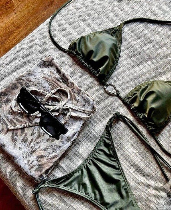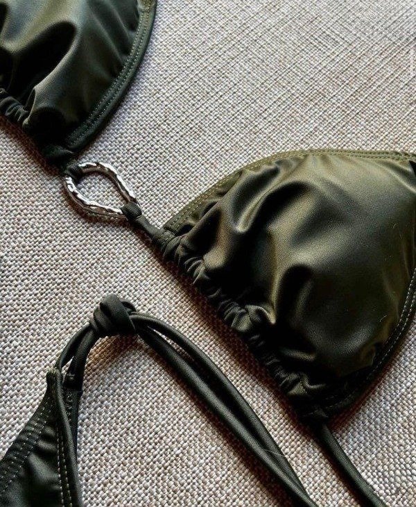 Bikini triangulo con detalles de argollas. Tazas desmontables.