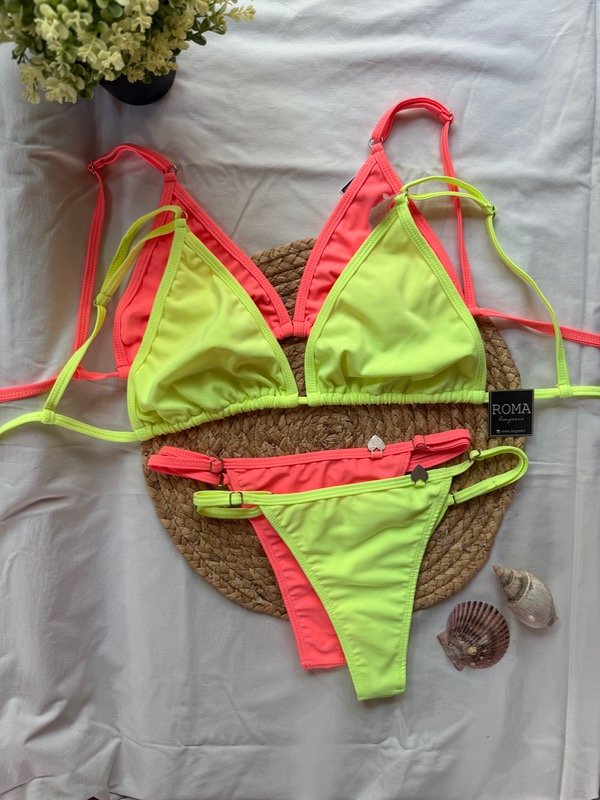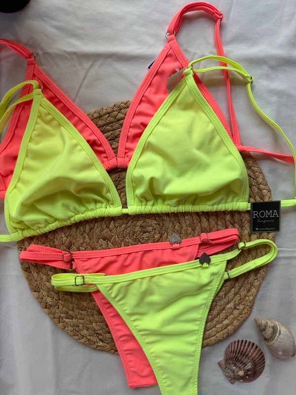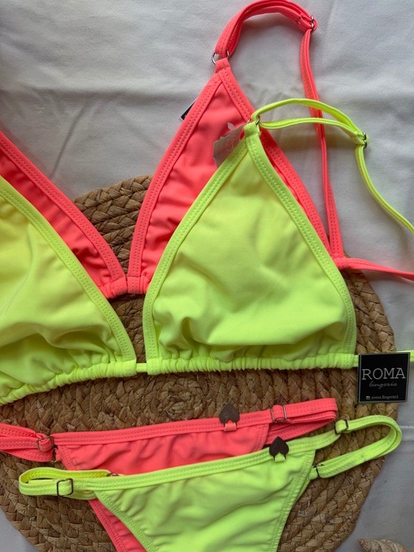 Corpiño triangulo fijo con breteles regulables y correderas de metal.